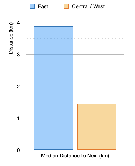 Median Distance to Next (km) |